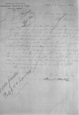 The history of BARTOLI spa paper mill originated in the late 1800s when in Villa Basilica, a small town between the provinces of Lucca and Pistoia, a center of paper production since the 14th century, Giuseppe Bartoli together with his two sons began the production of the family's air-dried paper.